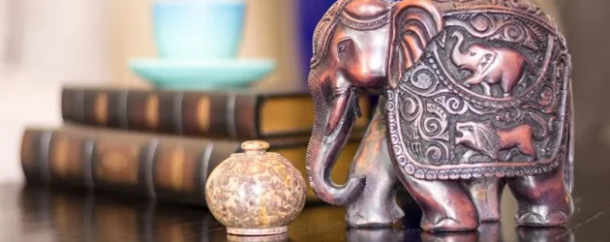 - Fil. Hortumu yükseltilmiş bir fil heykelciği bilgeliği, başarıyı ve finansal istikrarı simgelemektedir.